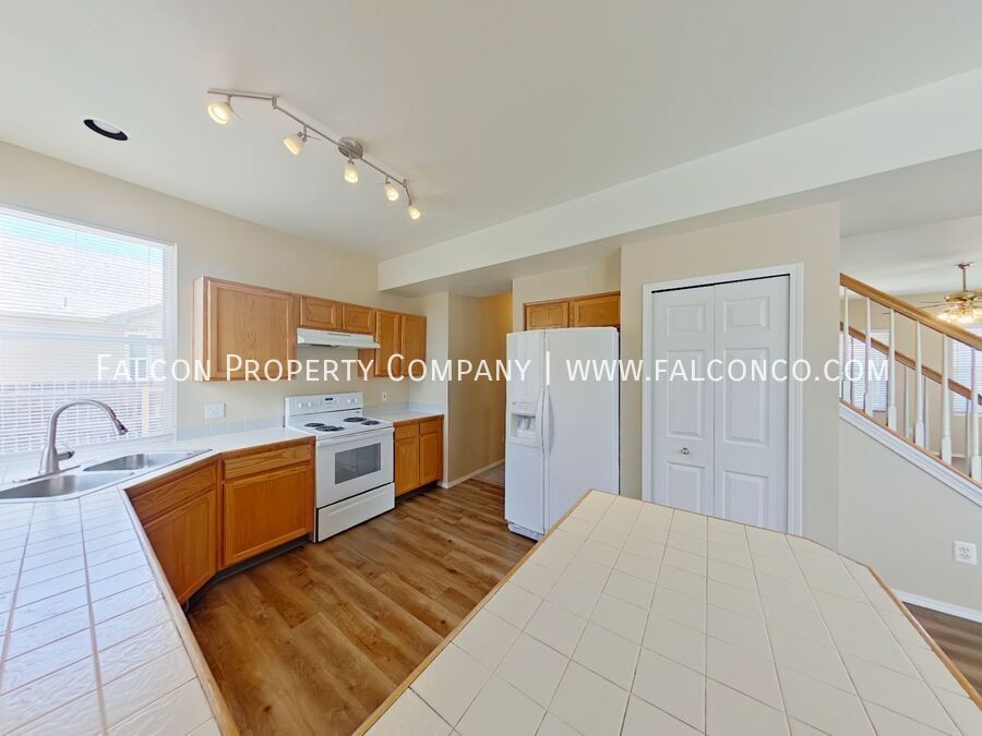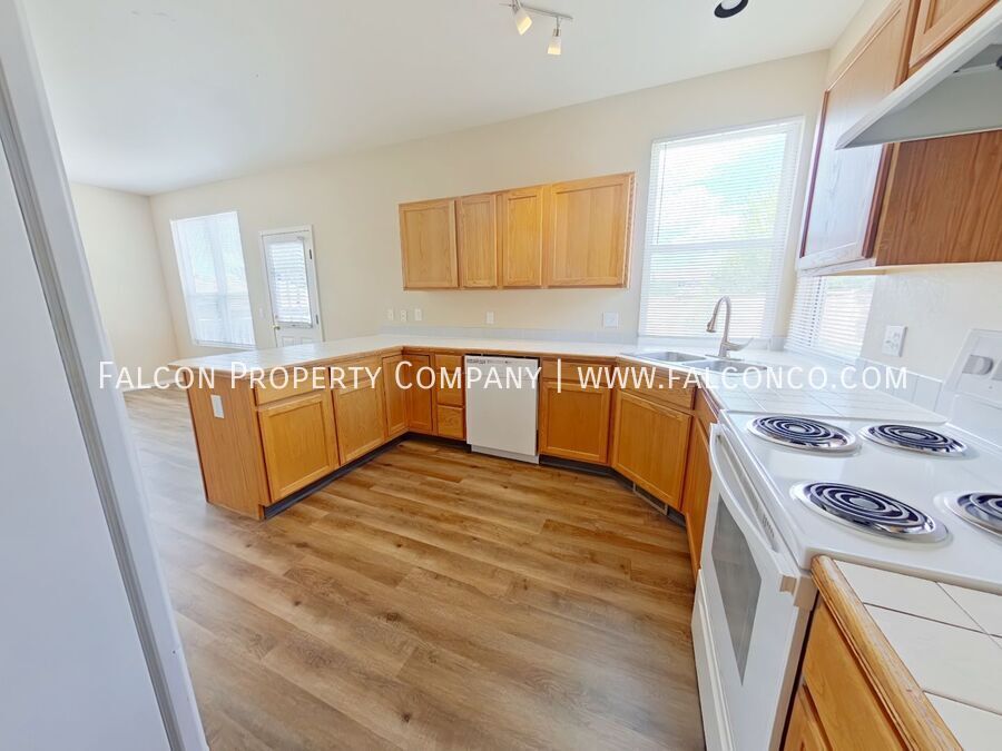 Welcome to this fantastic house in desirable Stetson Hills! This beautifully maintained home features ceiling fans throughout, a fenced-in back yard for privacy, a charming front porch perfect for enjoying your morning coffee, and plenty of storage space for all your belongings. The exterior has been newly painted, and the kitchen and dining room have new LVP flooring. Step outside onto the gorgeous deck which makes for an excellent entertaining space. The home has tons of natural light and an included washer and dryer make laundry day a breeze. Easy access to Powers Blvd. for restaurants, shopping entertainment and more! Don't miss out on the opportunity to make this house your new home!