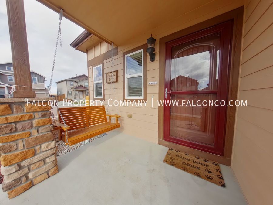 Welcome to this fantastic home in Lorson Ranch! This home features a welcoming front porch, perfect for enjoying your morning coffee. Inside, you'll find an open floor plan with stainless steel appliances and a gas stove in the kitchen. The primary bedroom is complete with an en suite bathroom and a large walk-in closet. Conveniently located on the upper level is a laundry room to make laundry a breeze. With an attached 2-car garage and a low maintenance backyard, this home has everything you need for comfortable living! With its close proximity to parks and military bases, you don't want to miss out on the opportunity to make this house your home!