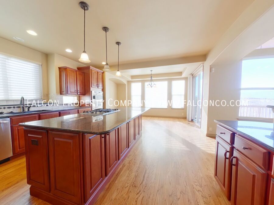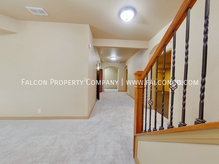 Welcome to this gorgeous home in the desirable Pine Creek neighborhood! This home is designed with everything you could want or need! You are first greeted with large windows, flooding the home with tons of natural light. There is a spacious open floor plan with hardwood flooring and brand new carpet throughout. The chef's kitchen features granite countertops, stainless steel appliances, a kitchen pantry, gas stove top, and a breakfast bar and mini bar, perfect for entertaining. The main level primary en suite includes a soaking tub for ultimate relaxation, and a large walk in closet for all of your storage needs! Enjoy movie nights in the home theater or stay active in the designate gym. The basement kitchenette is perfect for hosting guests, and the covered patio and deck with an indoor/outdoor fireplace offer breathtaking views. With a 3 car tandem garage and D20 schools, this home is a must-see! Easy access to Powers Blvd. for restaurants, shopping, entertainment and more! Don't miss the opportunity to call this incredible house, home!